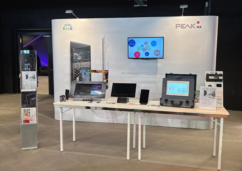 Nos deux collègues n’ont pas eu une minute à perdre. Au fil de nombreux échanges, ils ont présenté aux clients issus des domaines de l’intégration de systèmes et de la planification les dernières innovations PEAKnx, tout en leur donnant la possibilité de tester les appareils en direct. L’un des principaux sujets de discussion a été nos kits de remplacement pour panneaux tactiles, qui permettent de remplacer facilement d’anciens panneaux tactiles d’autres fabricants sans changer la boîte d’encastrement.