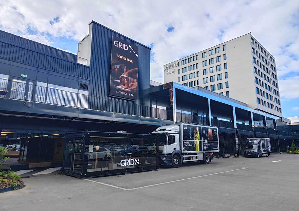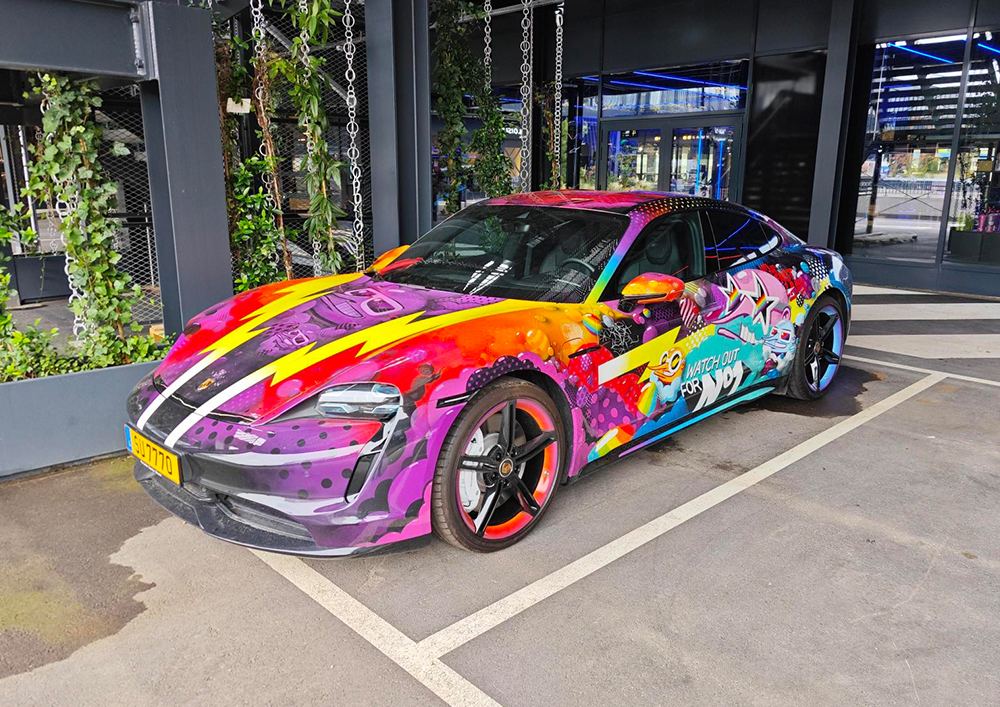 Un heureux hasard est venu compléter ce thème : dans l’espace automobile du GRIDX se trouve une Porsche décorée de graffitis par l’artiste luxembourgeois Sumo – le même artiste qui a conçu le design du verre avant de notre Controlpro, présenté sur place par nos collègues. Notre façade en verre colorée s’est parfaitement intégrée à côté de la Porsche tout aussi haute en couleur, un clin d’œil artistique remarqué par les visiteurs.